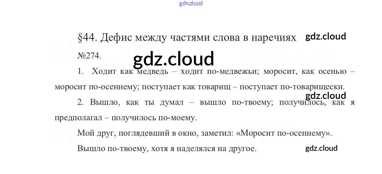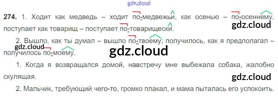 Ответ на задание 274 Учебник Русский язык за 7 (седьмой) класс Баранов, Ладыженская, Тростенцова УМК 2015