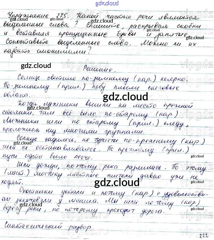 Ответ на задание 275 Учебник Русский язык за 7 (седьмой) класс Баранов, Ладыженская, Тростенцова УМК 2015