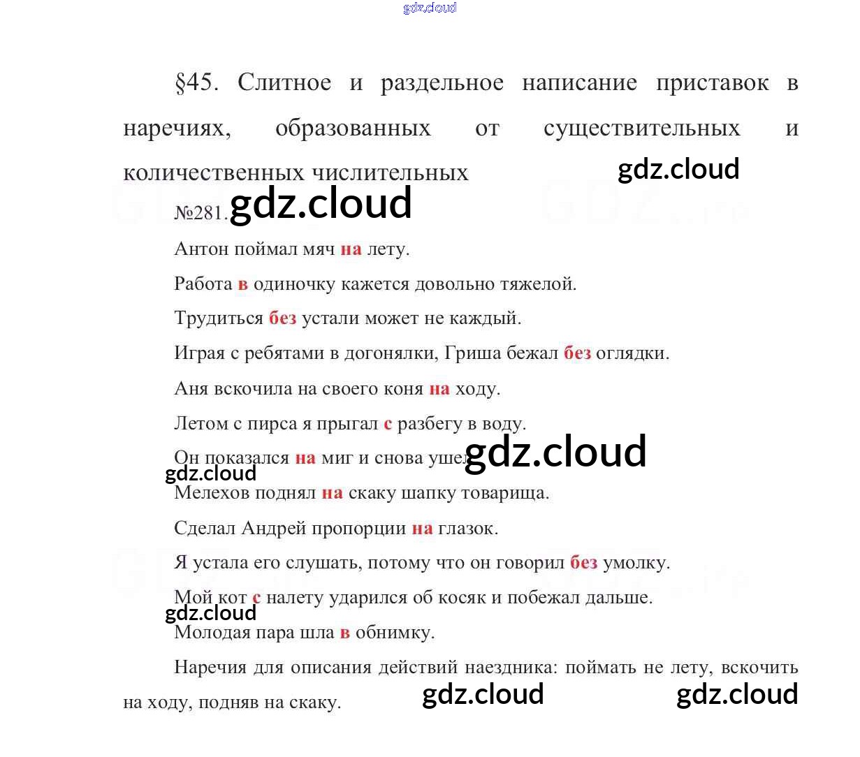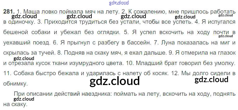 Ответ на задание 281 Учебник Русский язык за 7 (седьмой) класс Баранов, Ладыженская, Тростенцова УМК 2015