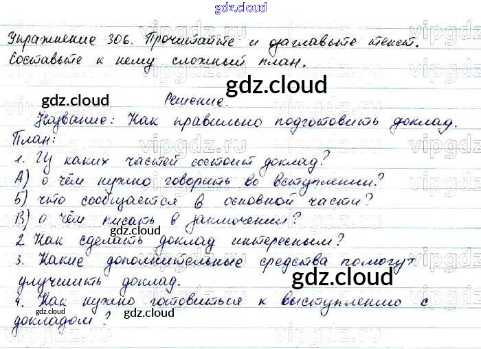 Ответ на задание 306 Учебник Русский язык за 7 (седьмой) класс Баранов, Ладыженская, Тростенцова УМК 2015