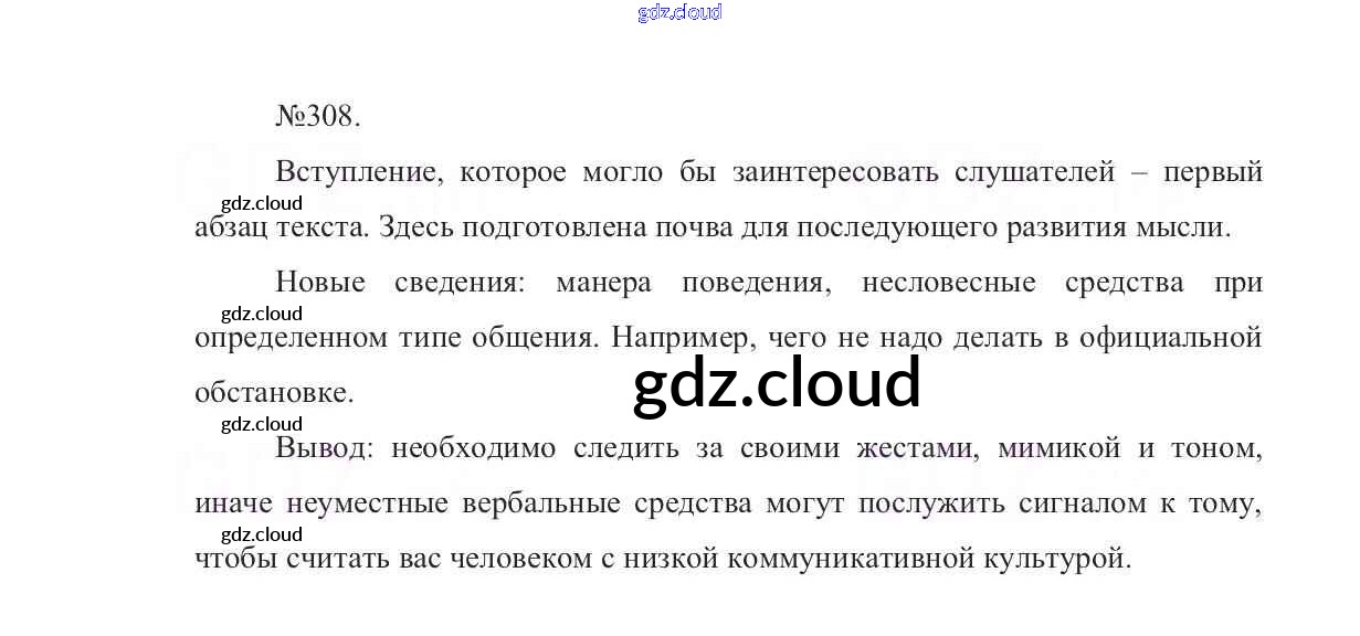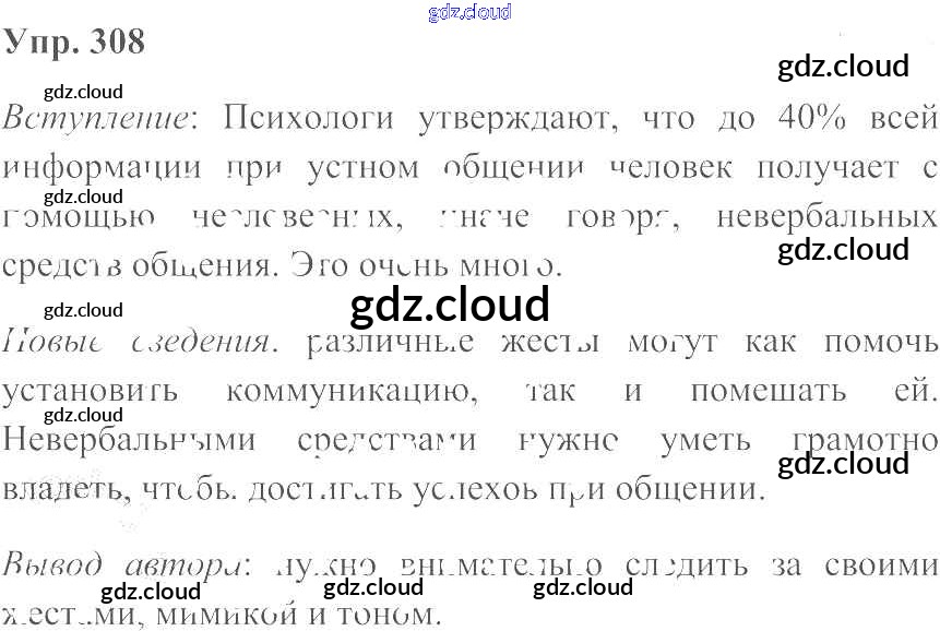 Ответ на задание 308 Учебник Русский язык за 7 (седьмой) класс Баранов, Ладыженская, Тростенцова УМК 2015