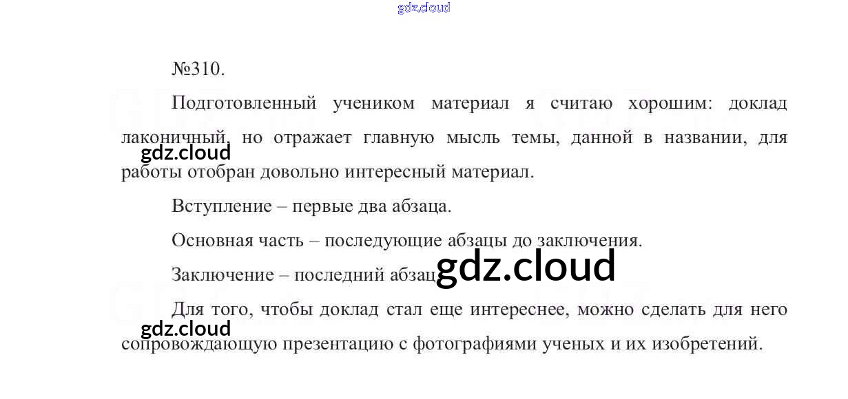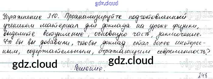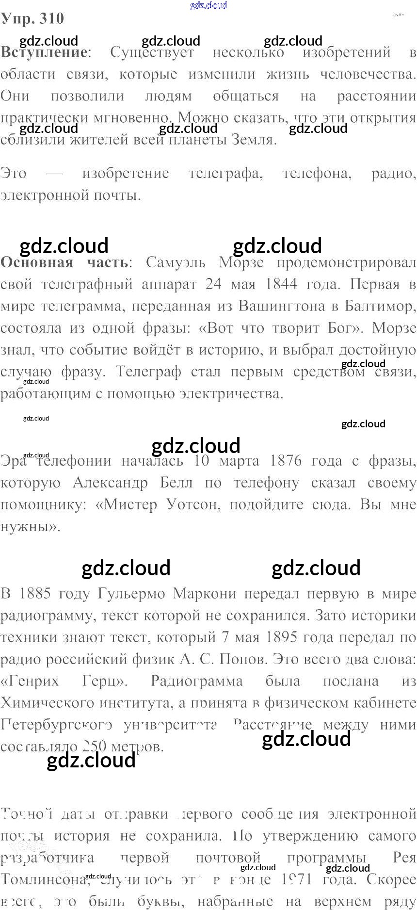 Ответ на задание 310 Учебник Русский язык за 7 (седьмой) класс Баранов, Ладыженская, Тростенцова УМК 2015