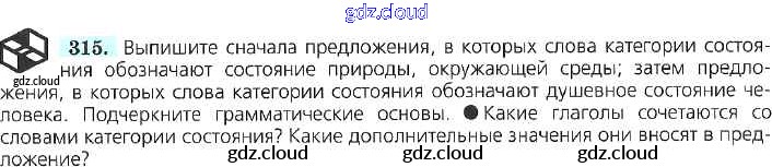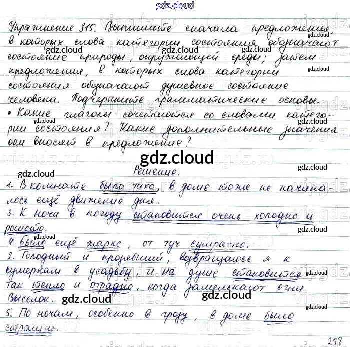 Ответ на задание 315 Учебник Русский язык за 7 (седьмой) класс Баранов, Ладыженская, Тростенцова УМК 2015