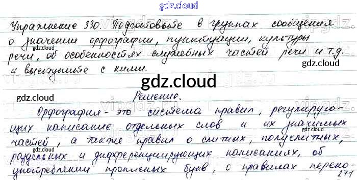 Ответ на задание 330 Учебник Русский язык за 7 (седьмой) класс Баранов, Ладыженская, Тростенцова 2015, 2022
