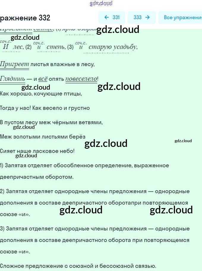 Ответ на задание 332 Учебник Русский язык за 7 (седьмой) класс Баранов, Ладыженская, Тростенцова 2015, 2022