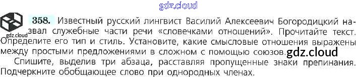 Ответ на задание 358 Учебник Русский язык за 7 (седьмой) класс Баранов, Ладыженская, Тростенцова 2015, 2022