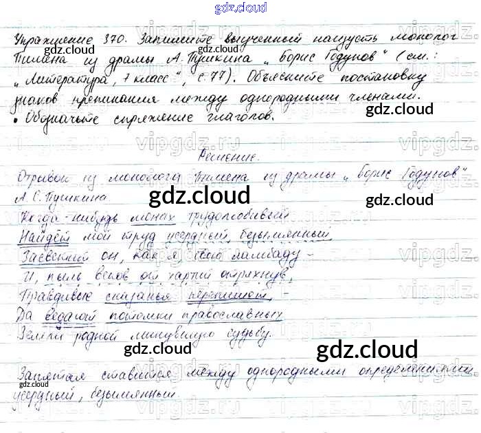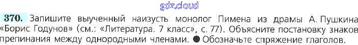 Ответ на задание 370 Учебник Русский язык за 7 (седьмой) класс Баранов, Ладыженская, Тростенцова УМК 2015