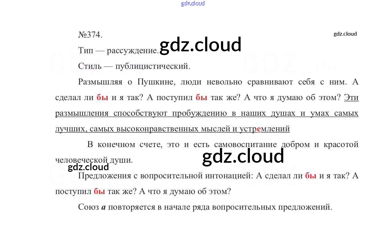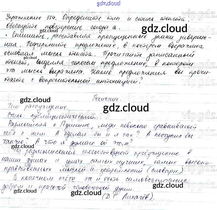 Ответ на задание 374 Учебник Русский язык за 7 (седьмой) класс Баранов, Ладыженская, Тростенцова УМК 2015