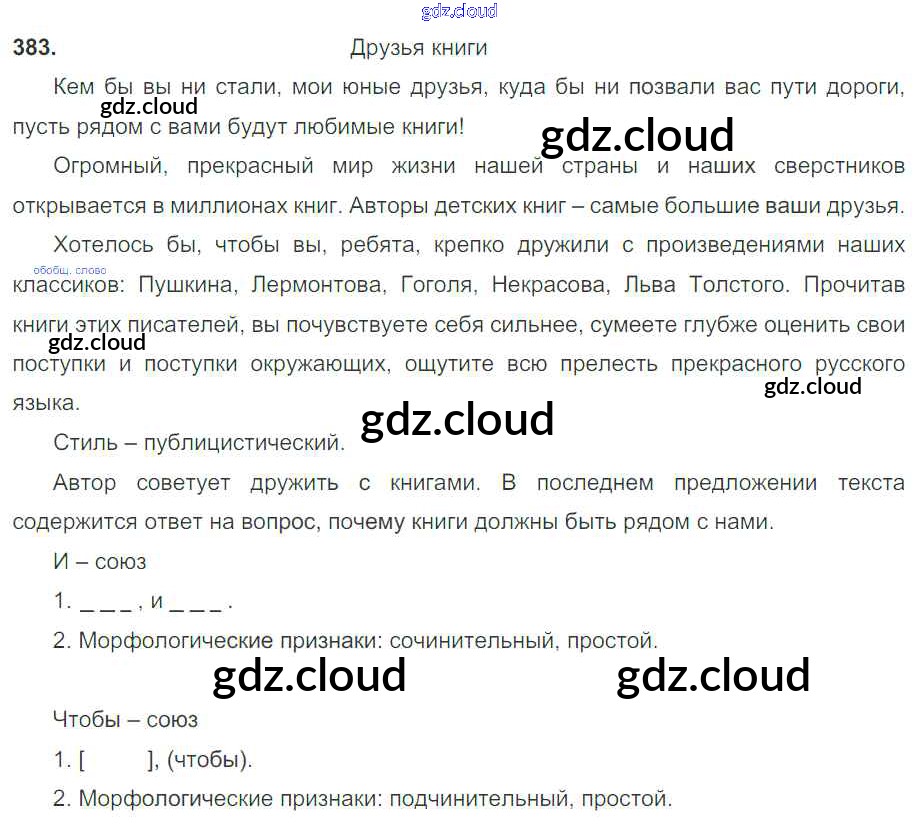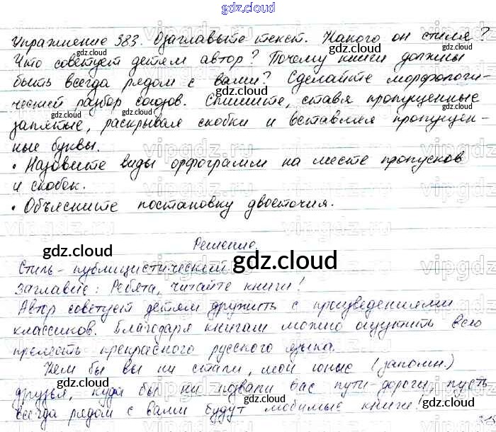 Ответ на задание 383 Учебник Русский язык за 7 (седьмой) класс Баранов, Ладыженская, Тростенцова УМК 2015