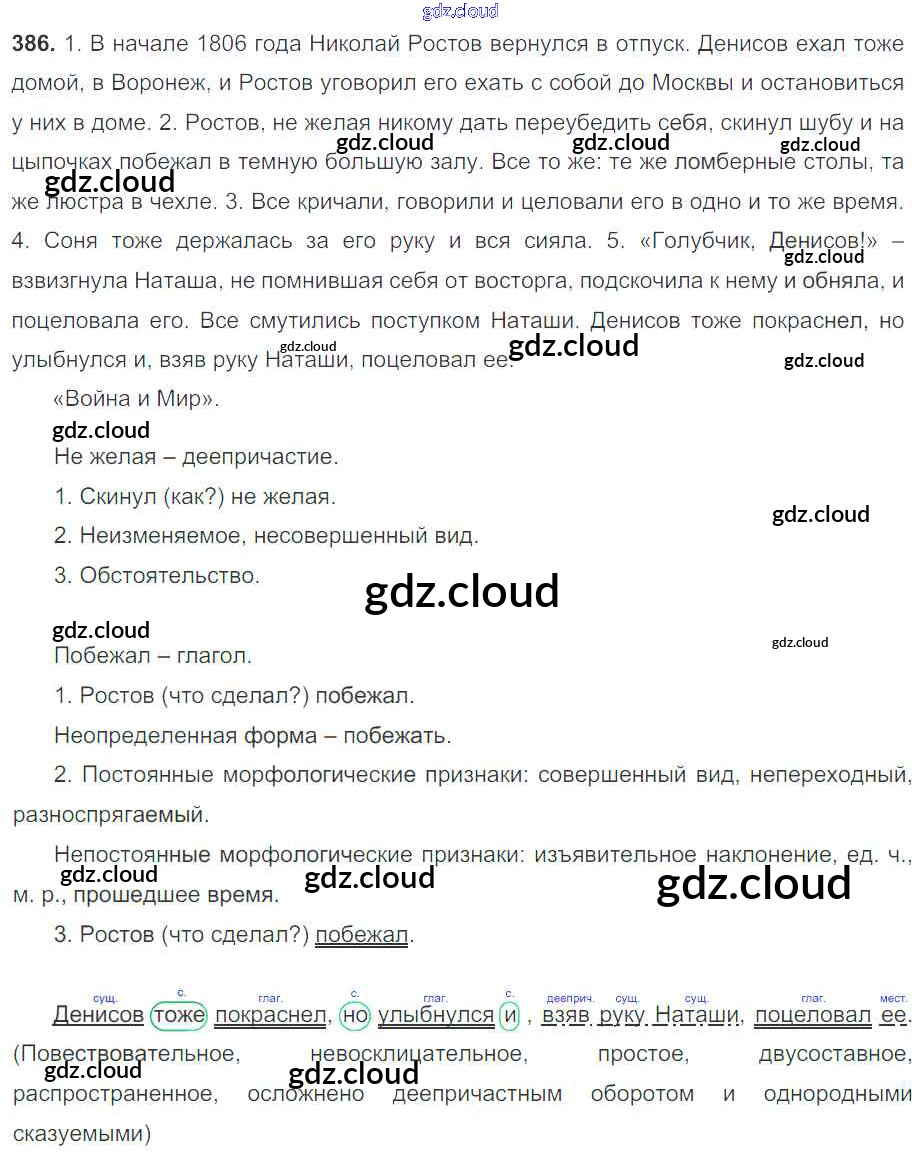 Ответ на задание 386 Учебник Русский язык за 7 (седьмой) класс Баранов, Ладыженская, Тростенцова УМК 2015