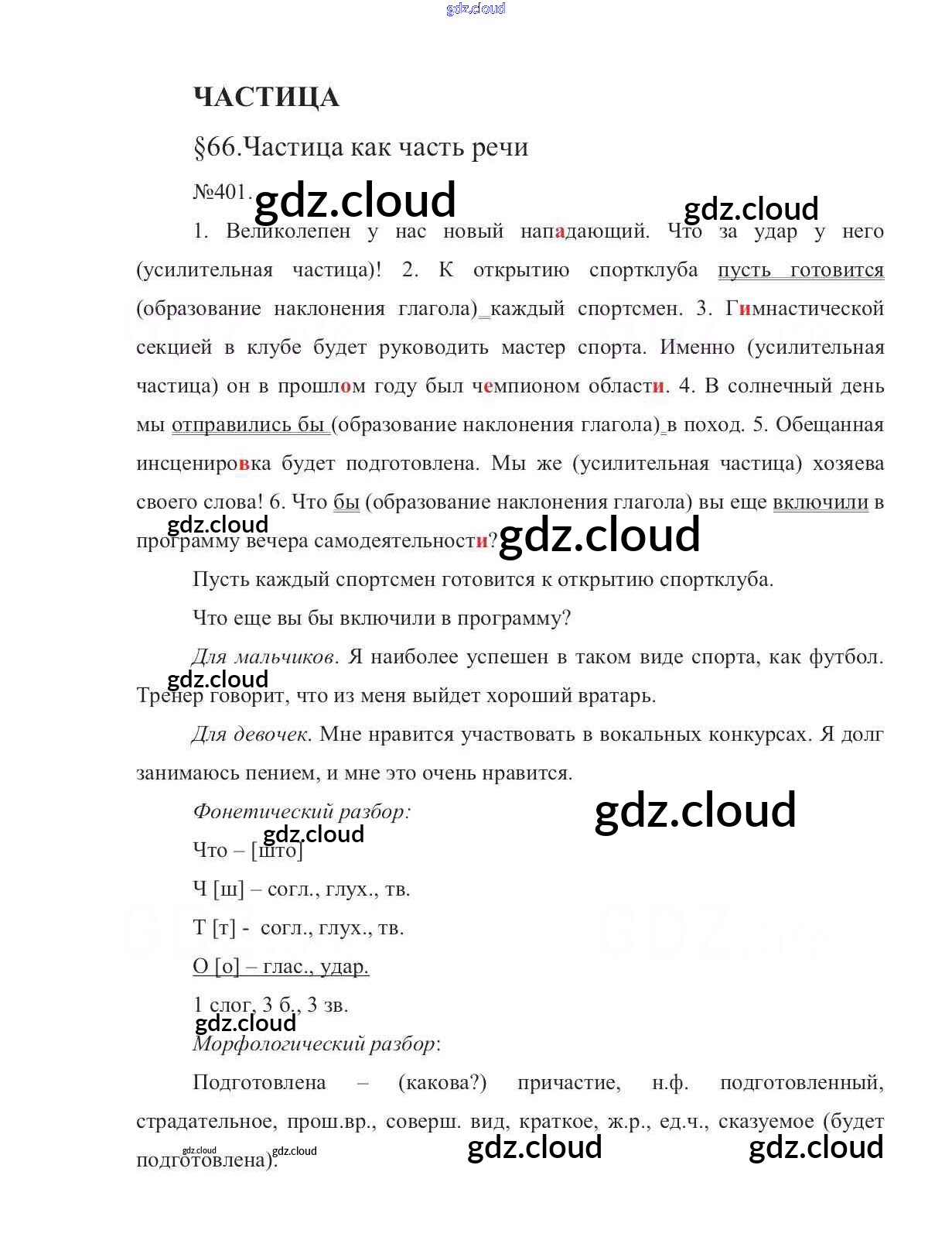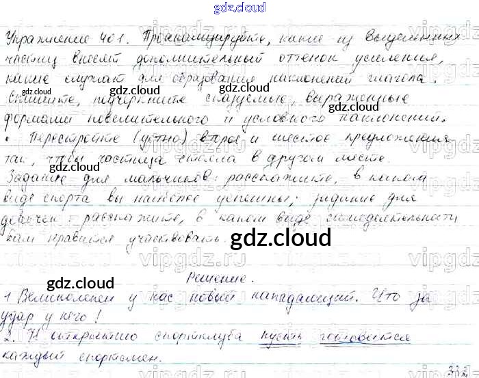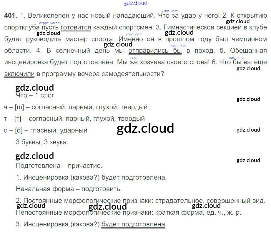 Ответ на задание 401 Учебник Русский язык за 7 (седьмой) класс Баранов, Ладыженская, Тростенцова УМК 2015
