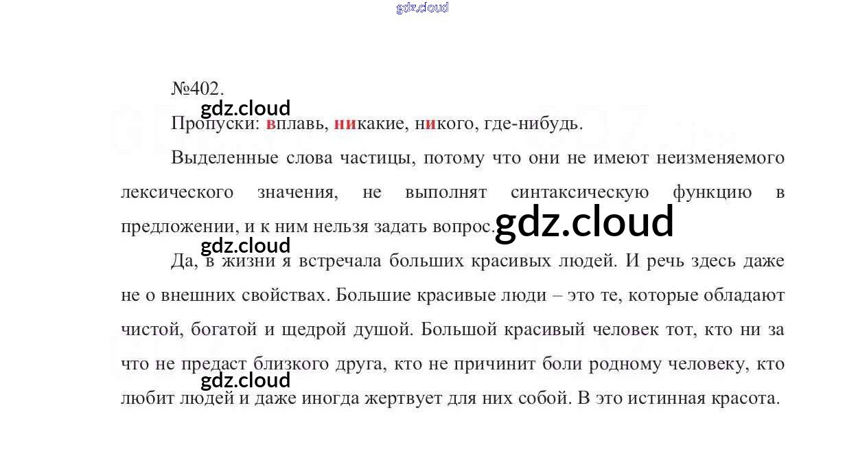 Ответ на задание 402 Учебник Русский язык за 7 (седьмой) класс Баранов, Ладыженская, Тростенцова УМК 2015
