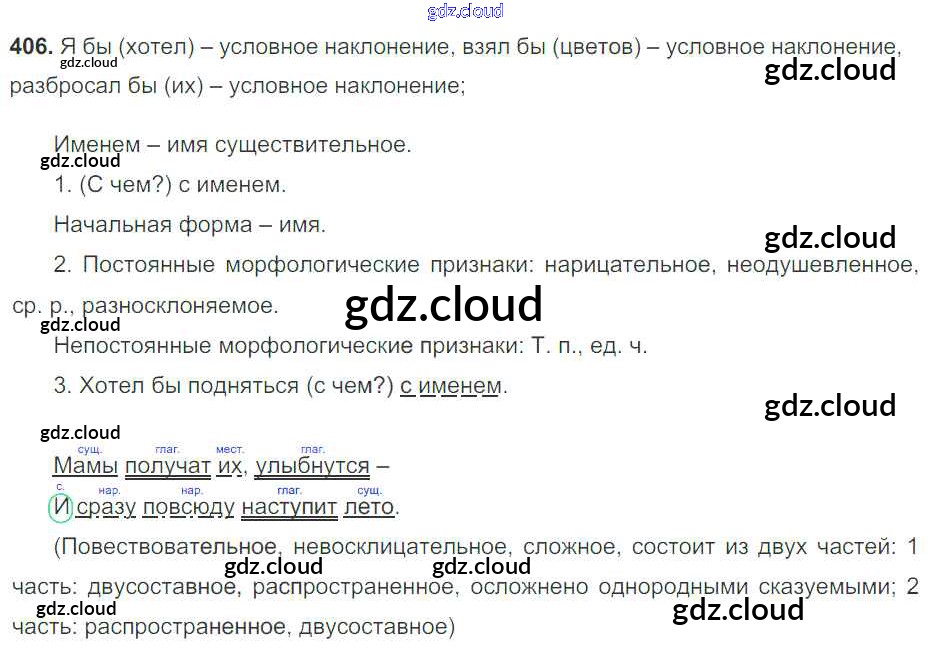 Ответ на задание 406 Учебник Русский язык за 7 (седьмой) класс Баранов, Ладыженская, Тростенцова УМК 2015