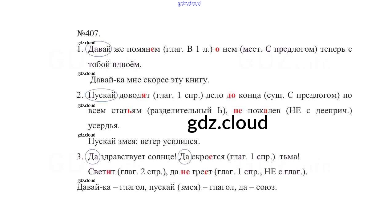 Ответ на задание 407 Учебник Русский язык за 7 (седьмой) класс Баранов, Ладыженская, Тростенцова УМК 2015