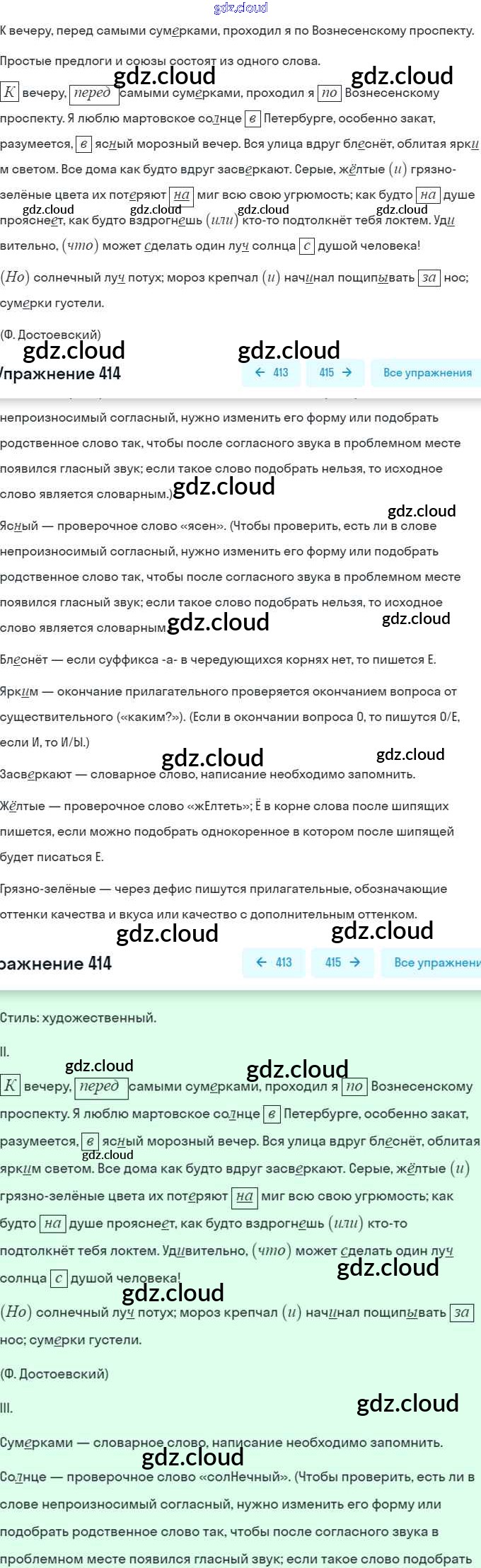 Ответ на задание 414 Учебник Русский язык за 7 (седьмой) класс Баранов, Ладыженская, Тростенцова 2015, 2022