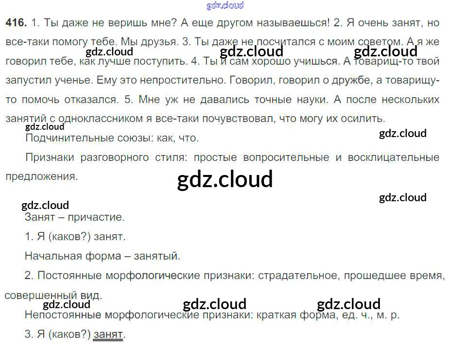 Ответ на задание 416 Учебник Русский язык за 7 (седьмой) класс Баранов, Ладыженская, Тростенцова УМК 2015