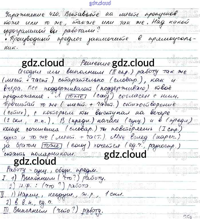 Ответ на задание 420 Учебник Русский язык за 7 (седьмой) класс Баранов, Ладыженская, Тростенцова УМК 2015