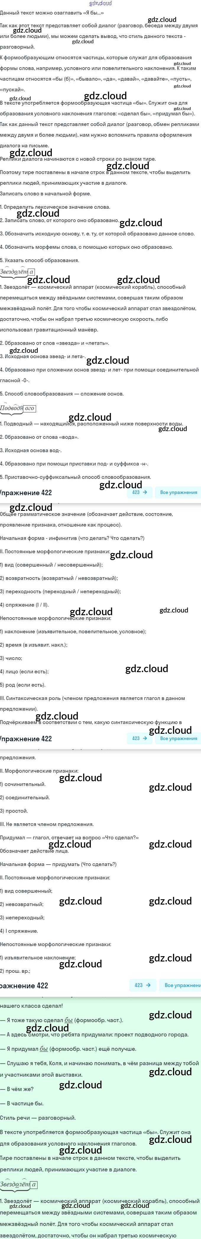 Ответ на задание 422 Учебник Русский язык за 7 (седьмой) класс Баранов, Ладыженская, Тростенцова 2015, 2022