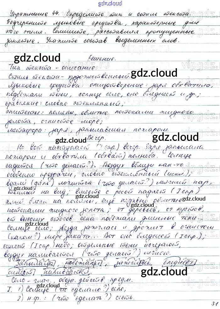 Ответ на задание 44 Учебник Русский язык за 7 (седьмой) класс Баранов, Ладыженская, Тростенцова УМК 2015