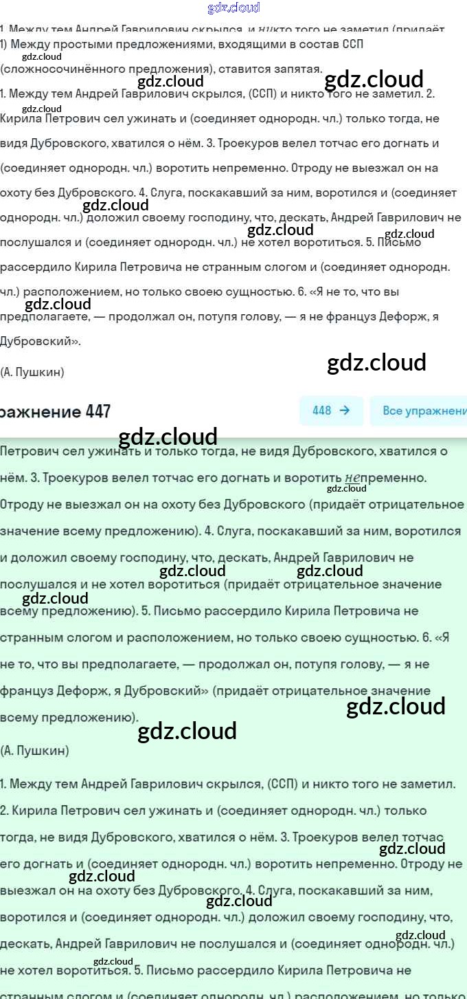 Ответ на задание 447 Учебник Русский язык за 7 (седьмой) класс Баранов, Ладыженская, Тростенцова 2015, 2022