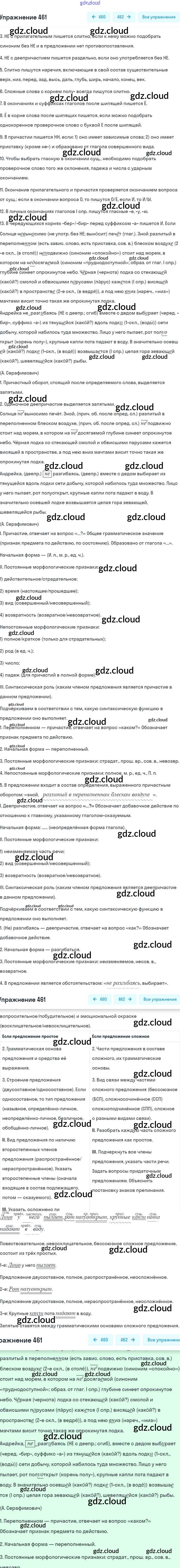 Ответ на задание 461 Учебник Русский язык за 7 (седьмой) класс Баранов, Ладыженская, Тростенцова 2015, 2022