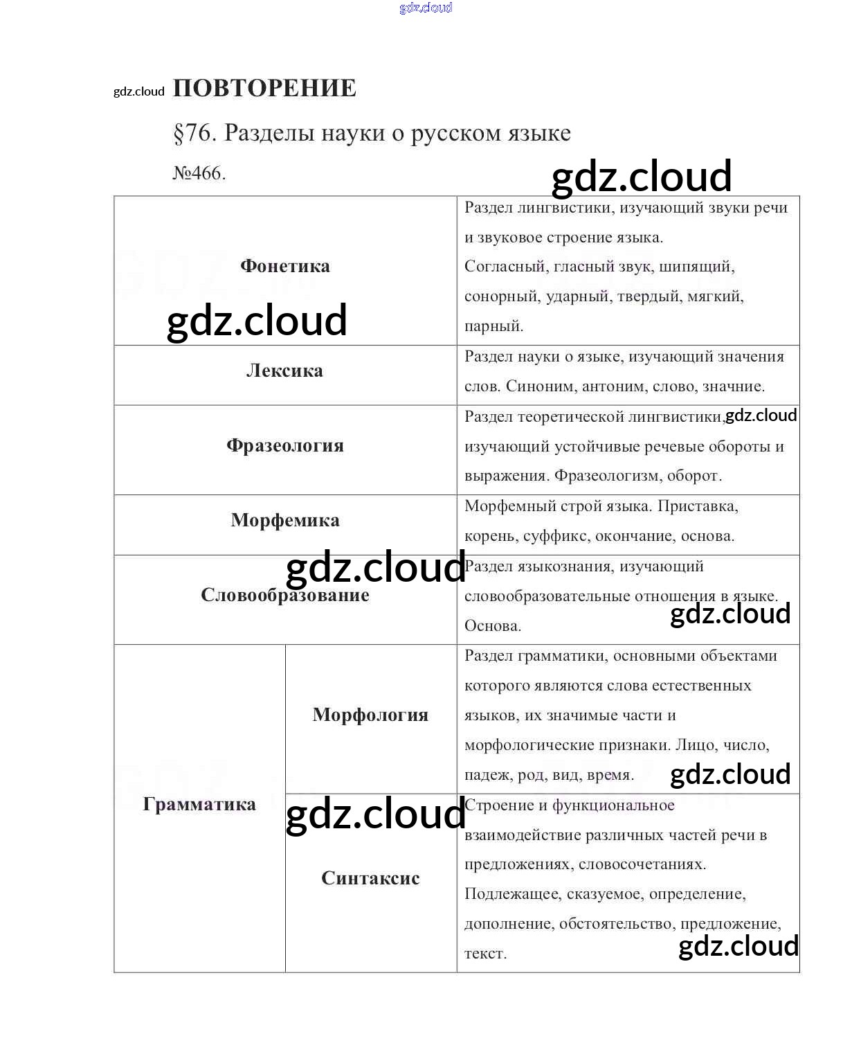 Ответ на задание 466 Учебник Русский язык за 7 (седьмой) класс Баранов, Ладыженская, Тростенцова УМК 2015