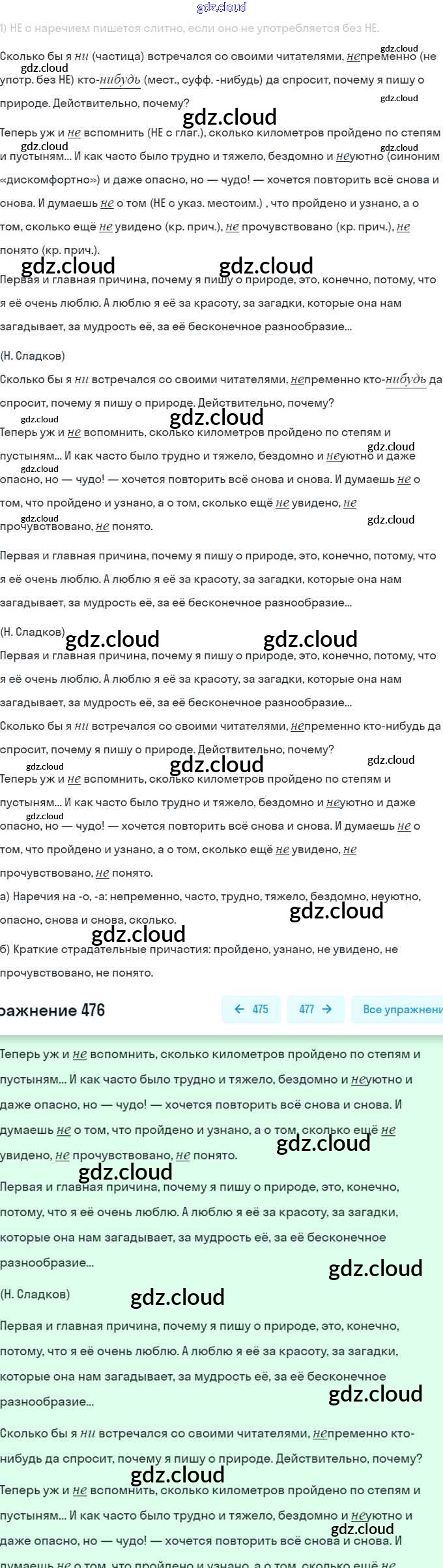 Ответ на задание 476 Учебник Русский язык за 7 (седьмой) класс Баранов, Ладыженская, Тростенцова 2015, 2022