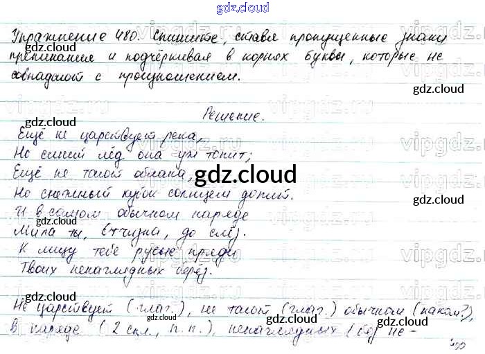 Ответ на задание 480 Учебник Русский язык за 7 (седьмой) класс Баранов, Ладыженская, Тростенцова УМК 2015