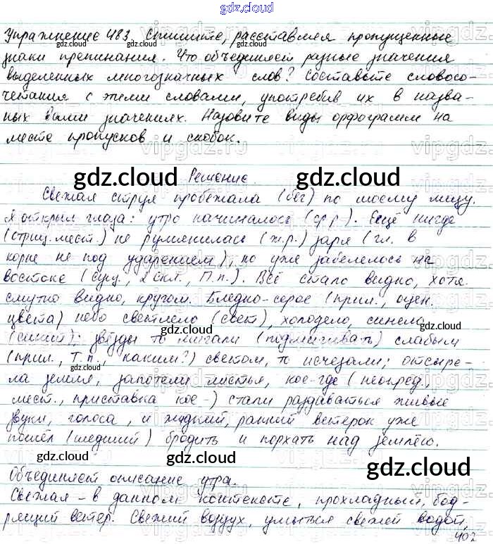 Ответ на задание 483 Учебник Русский язык за 7 (седьмой) класс Баранов, Ладыженская, Тростенцова 2015, 2022