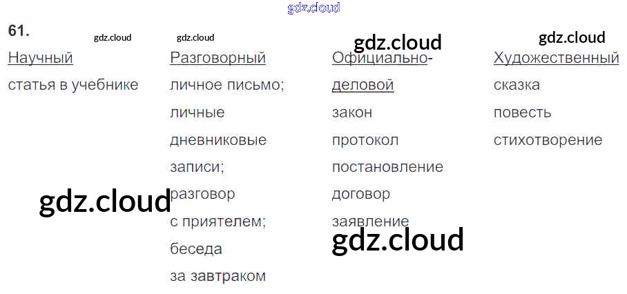 Ответ на задание 61 Учебник Русский язык за 7 (седьмой) класс Баранов, Ладыженская, Тростенцова УМК 2015