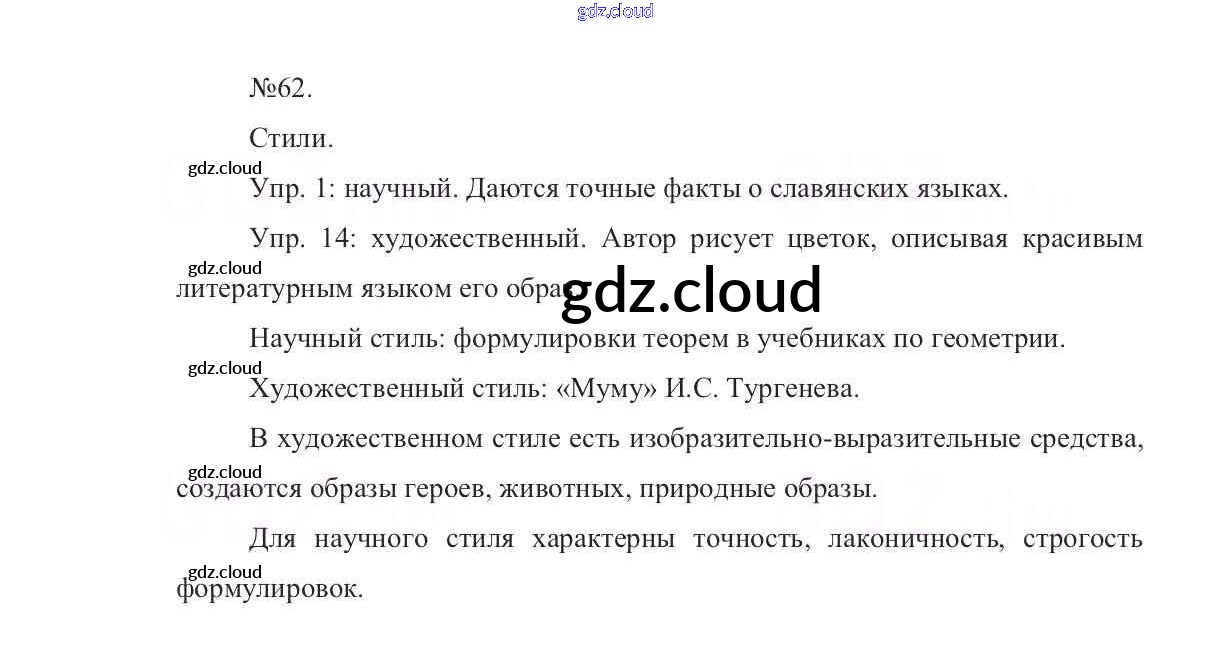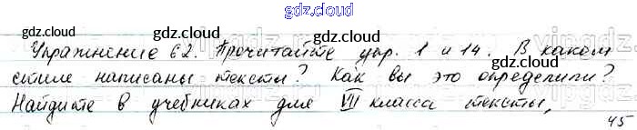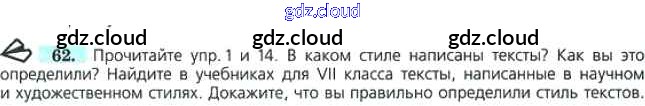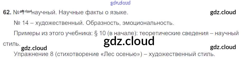 Ответ на задание 62 Учебник Русский язык за 7 (седьмой) класс Баранов, Ладыженская, Тростенцова УМК 2015