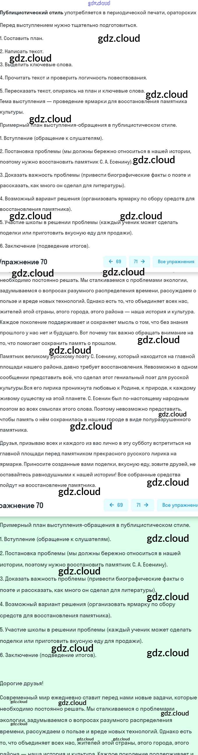 Ответ на задание 70 Учебник Русский язык за 7 (седьмой) класс Баранов, Ладыженская, Тростенцова 2015, 2022