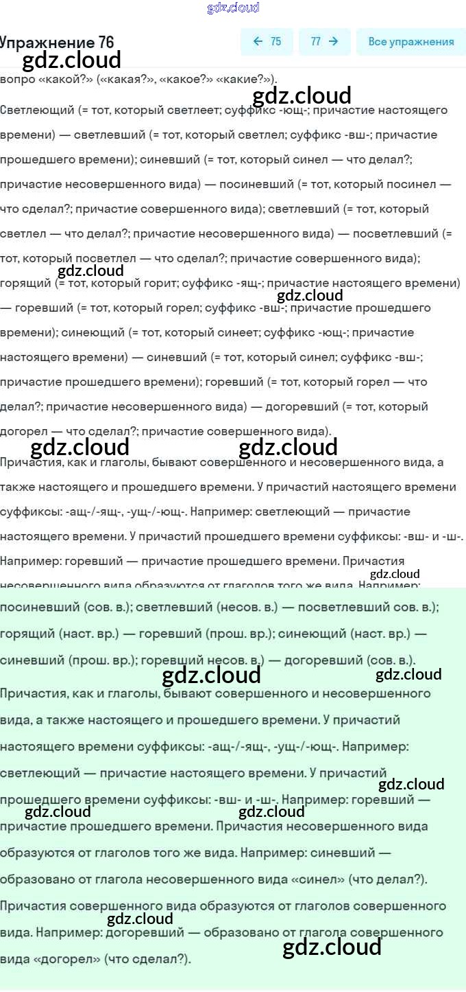 Ответ на задание 76 Учебник Русский язык за 7 (седьмой) класс Баранов, Ладыженская, Тростенцова 2015, 2022