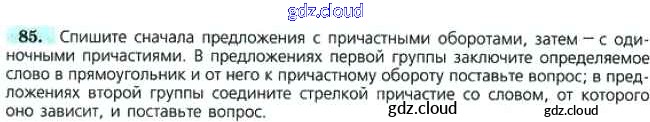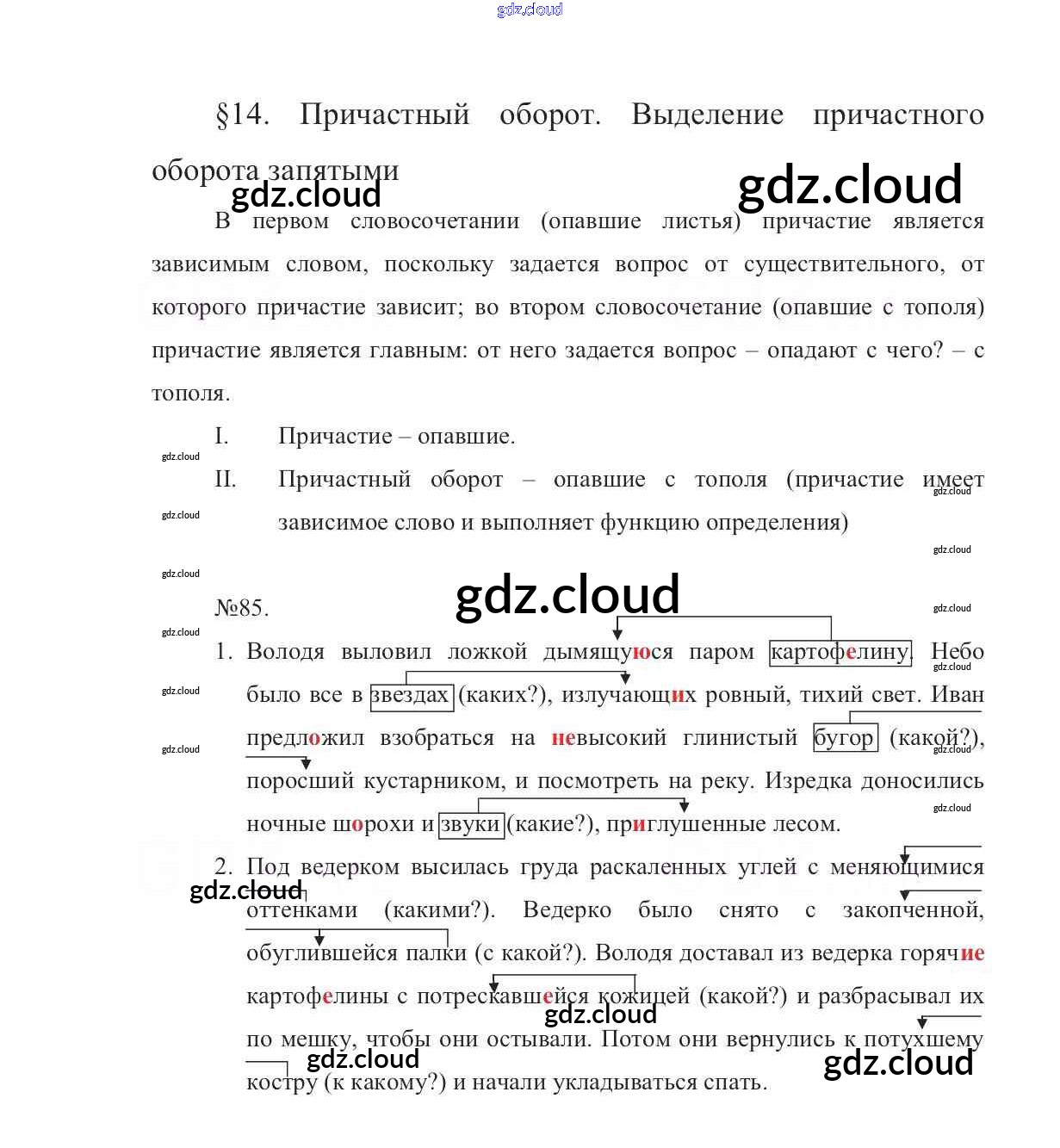 Ответ на задание 85 Учебник Русский язык за 7 (седьмой) класс Баранов, Ладыженская, Тростенцова 2015, 2022
