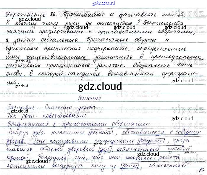 Ответ на задание 86 Учебник Русский язык за 7 (седьмой) класс Баранов, Ладыженская, Тростенцова УМК 2015