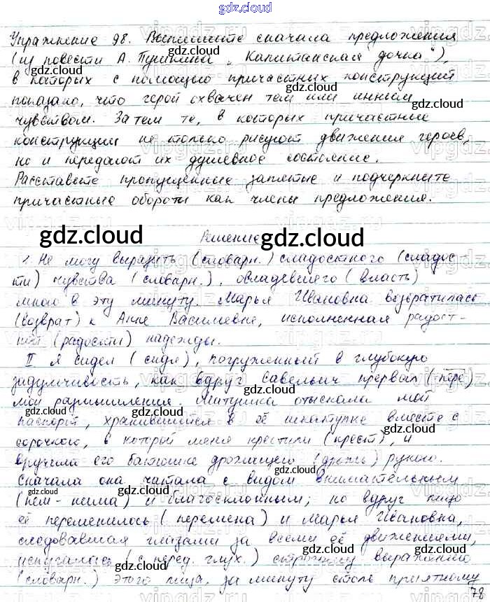 Ответ на задание 98 Учебник Русский язык за 7 (седьмой) класс Баранов, Ладыженская, Тростенцова УМК 2015