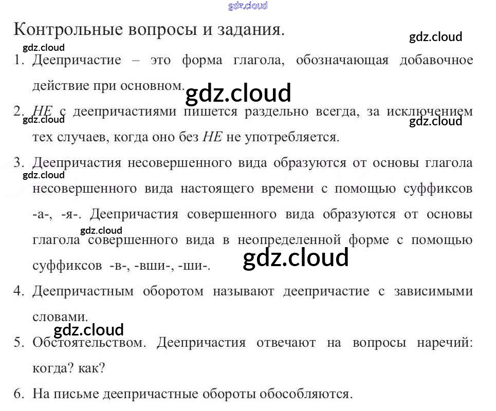 Ответы. Контрольные вопросы и задания (2015) по Русскому языку 7 класс Учебник Баранов Просвещение, Просвещение