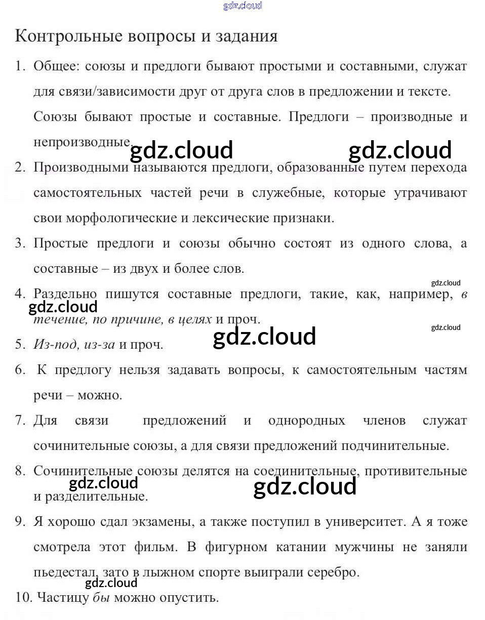 Ответы. Контрольные вопросы и задания (2015) по Русскому языку 7 класс Учебник Баранов Просвещение, Просвещение