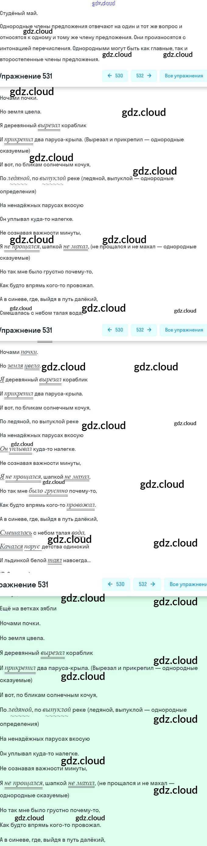 Ответ на задание 531 Учебник Русский язык за 7 (седьмой) класс Баранов, Ладыженская, Тростенцова 2015, 2022