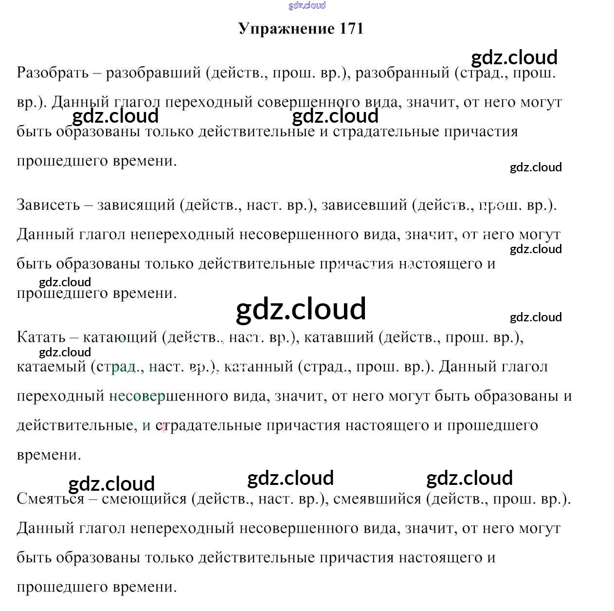 Ответ на задание 171 Учебник Русский язык за 7 (седьмой) класс Мурина, Волынец, Долбик 2015