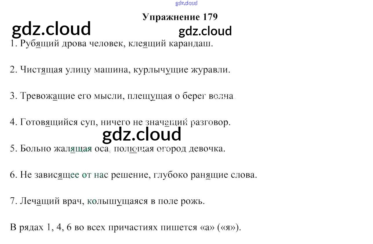 Ответ на задание 179 Учебник Русский язык за 7 (седьмой) класс Мурина, Волынец, Долбик 2015