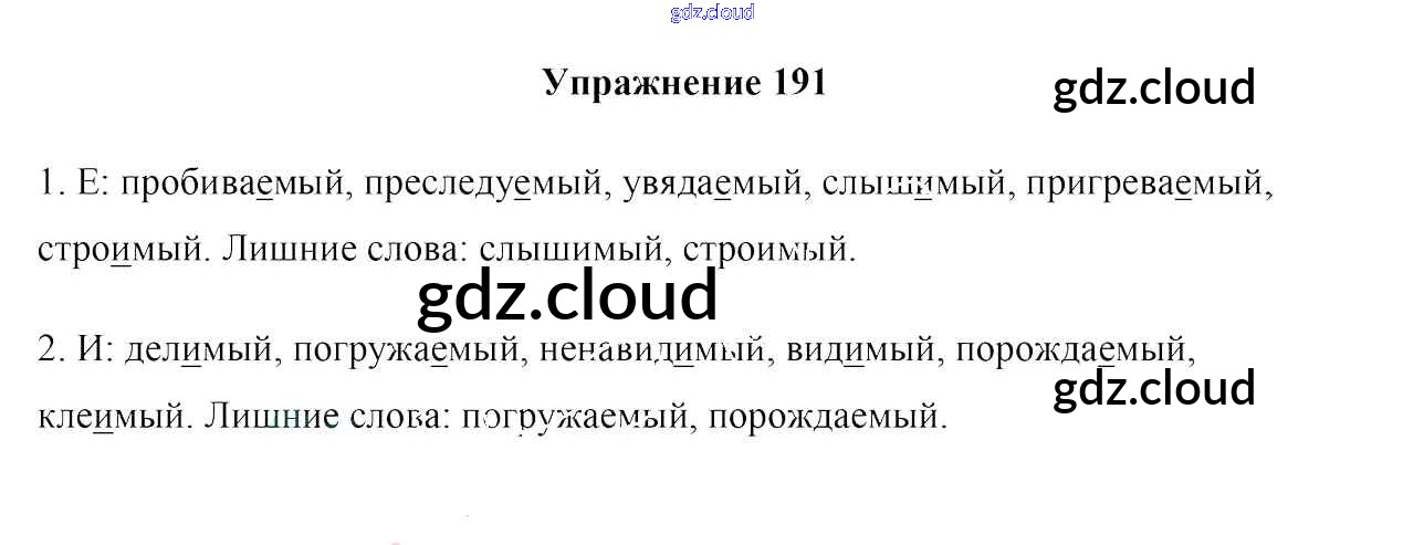 Ответ на задание 191 Учебник Русский язык за 7 (седьмой) класс Мурина, Волынец, Долбик 2015