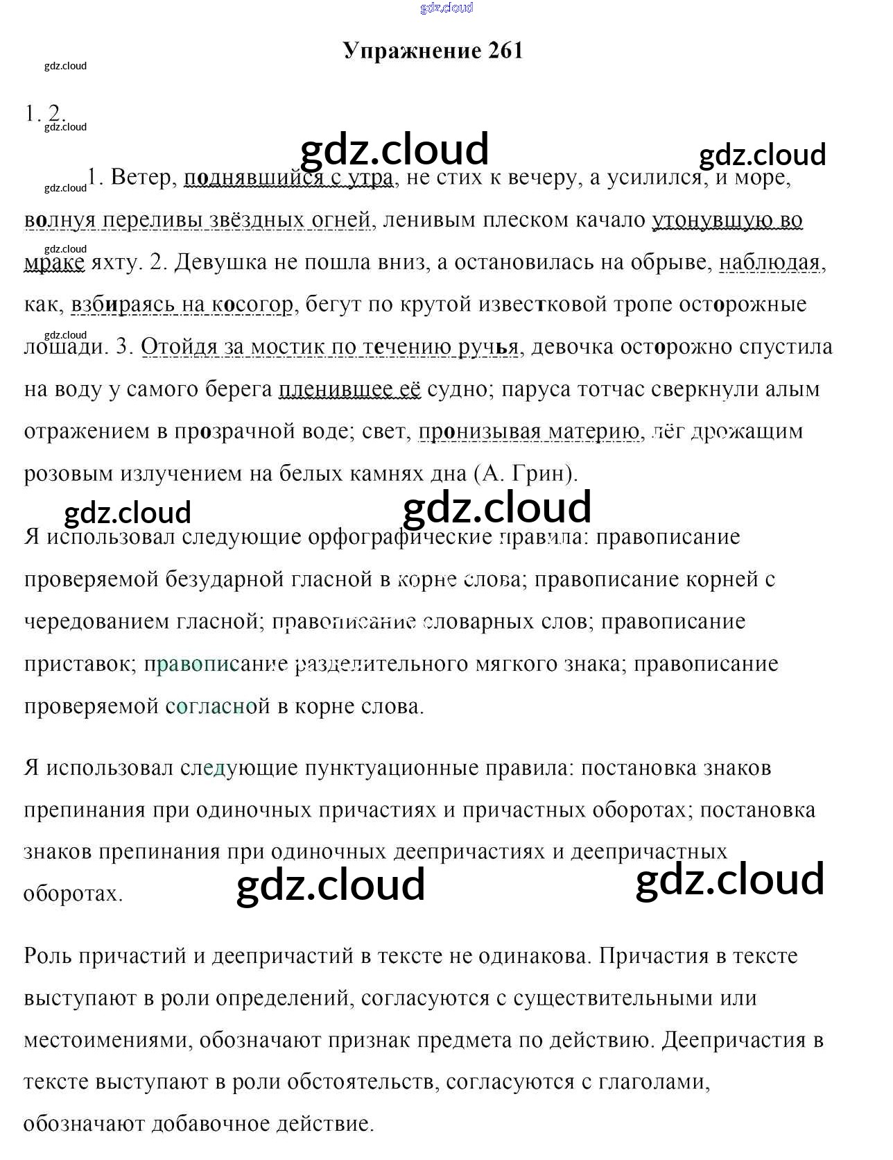 Ответ на задание 261 Учебник Русский язык за 7 (седьмой) класс Мурина, Волынец, Долбик 2015
