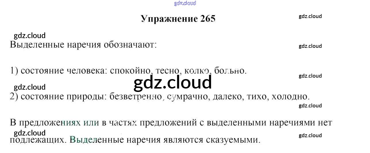 Ответ на задание 265 Учебник Русский язык за 7 (седьмой) класс Мурина, Волынец, Долбик 2015