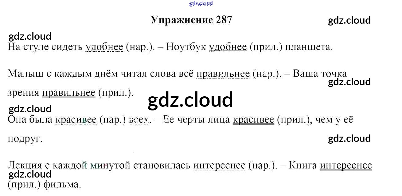 Ответ на задание 287 Учебник Русский язык за 7 (седьмой) класс Мурина, Волынец, Долбик 2015