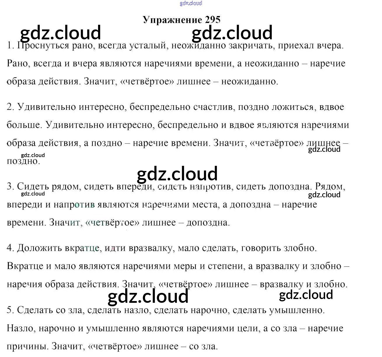 Ответ на задание 295 Учебник Русский язык за 7 (седьмой) класс Мурина, Волынец, Долбик 2015