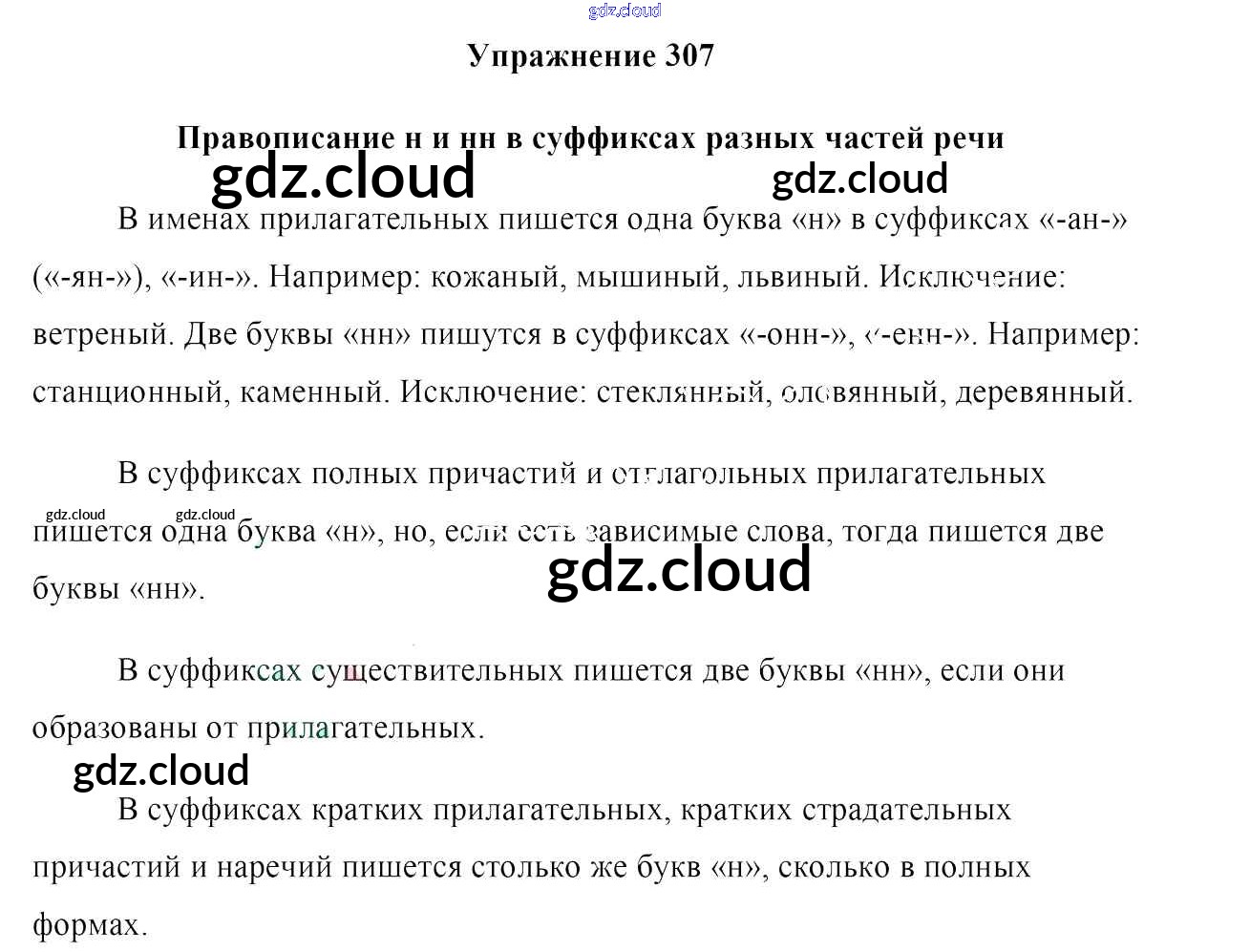 Ответ на задание 307 Учебник Русский язык за 7 (седьмой) класс Мурина, Волынец, Долбик 2015