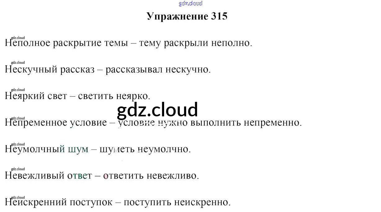 Ответ на задание 315 Учебник Русский язык за 7 (седьмой) класс Мурина, Волынец, Долбик 2015