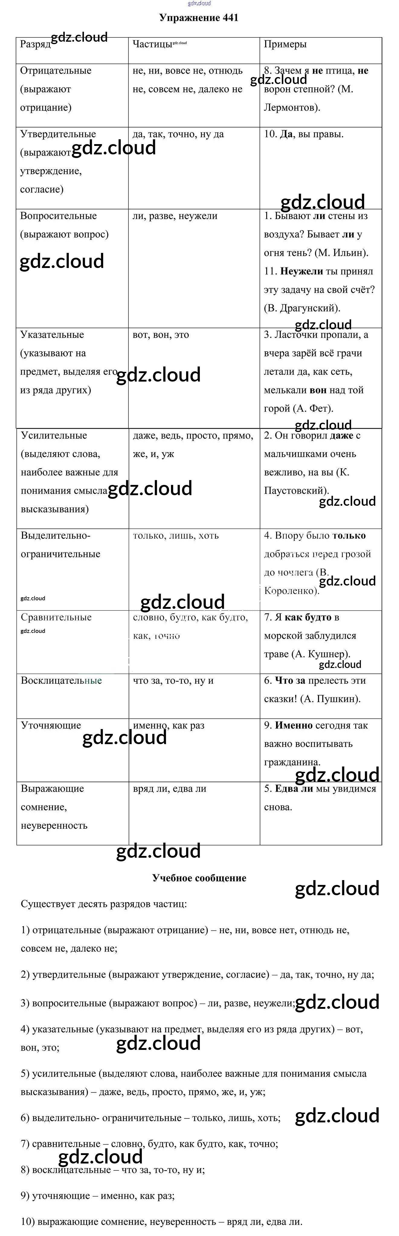 Ответ на задание 441 Учебник Русский язык за 7 (седьмой) класс Мурина, Волынец, Долбик 2015