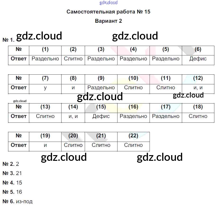 СР-15. Варианты Ответы к самостоятельным работам по Русскому языку 7 класс Рабочая тетрадь Александров Национальное образование